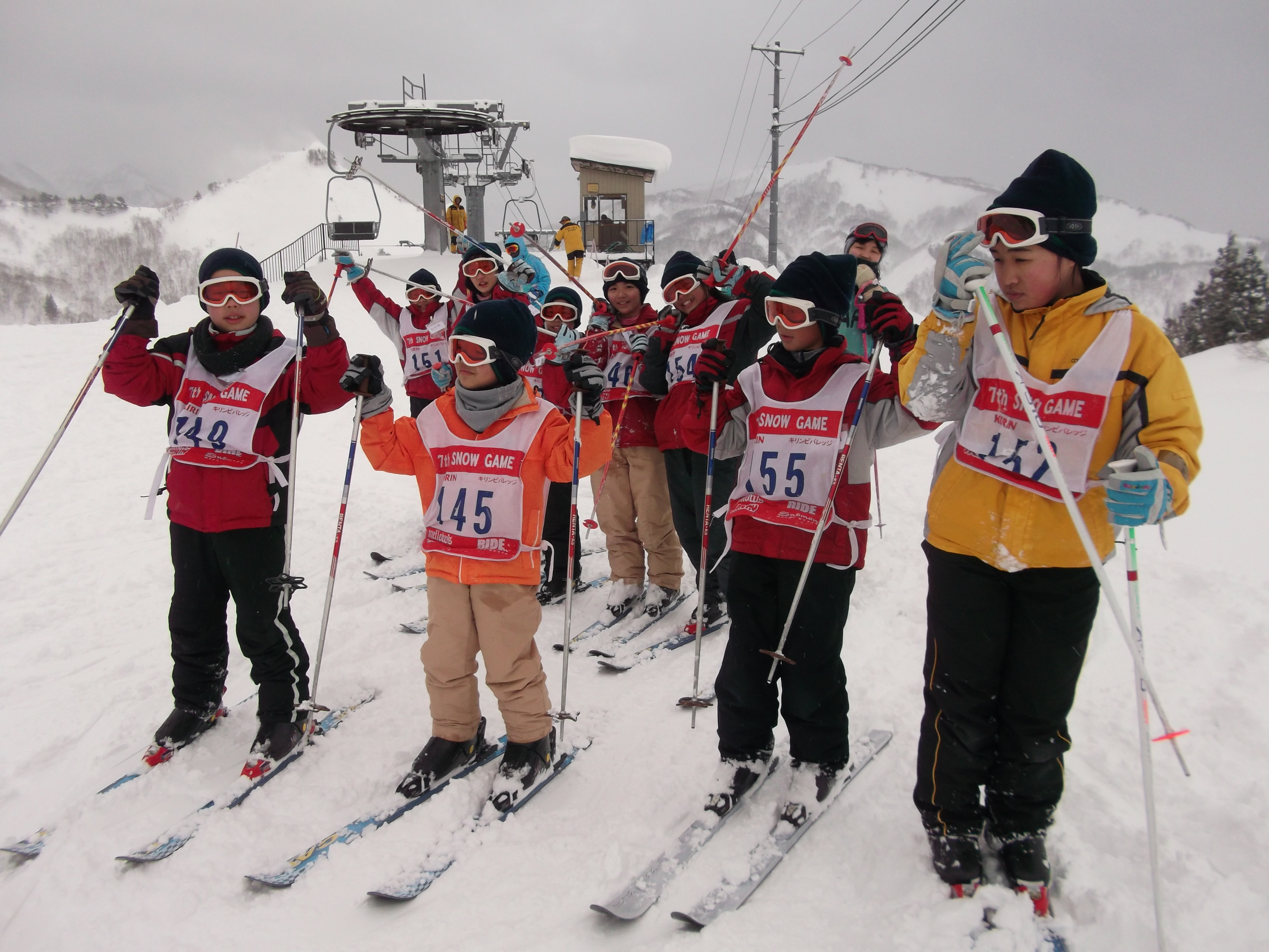 そのみんなが、初スキーで、初リフトで、リフト降り場でのスナップ写真。